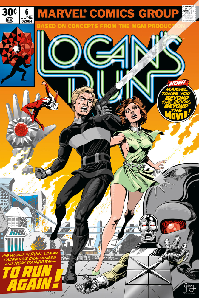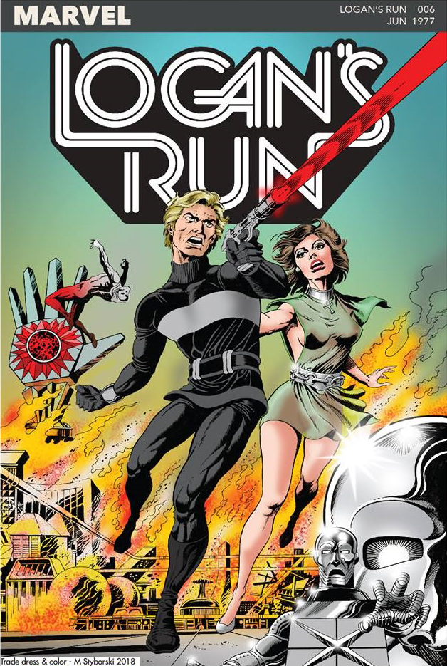 I recently came across these 2 recolored versions of Paul's classic Logan's Run # 6 cover from 1977, on the internet. The first one was created by Catspaw Dynamics with variant colors and the addition of Paul's signature in the lower right-hand corner. It appears that the colorist's last name may be "Dutton". The 2nd version, with more blue tone variant colors, was created by Mike Styborski in 2018.